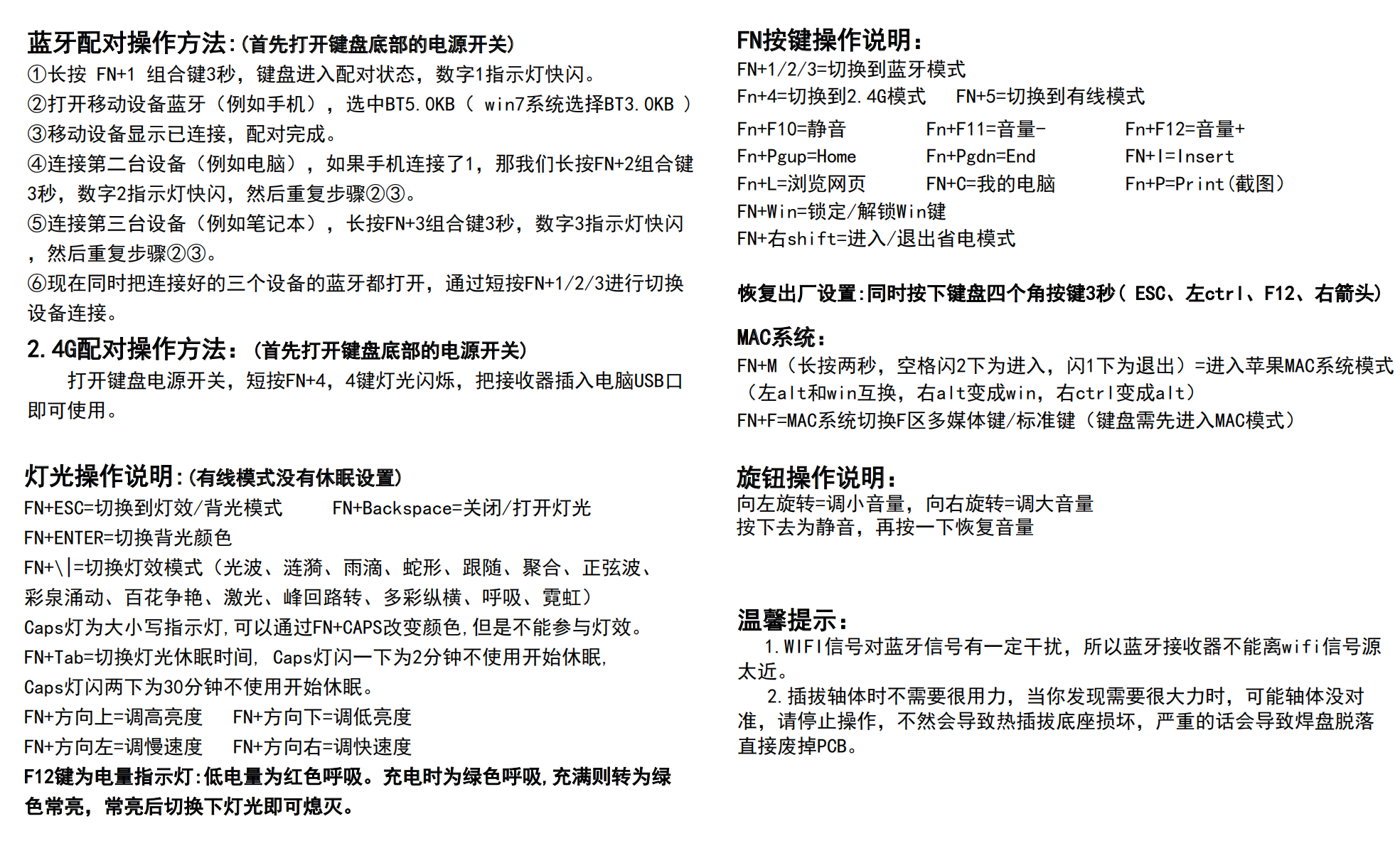 | Fn-M | 切换mac/win适配,闪两下是mac,一下是win |